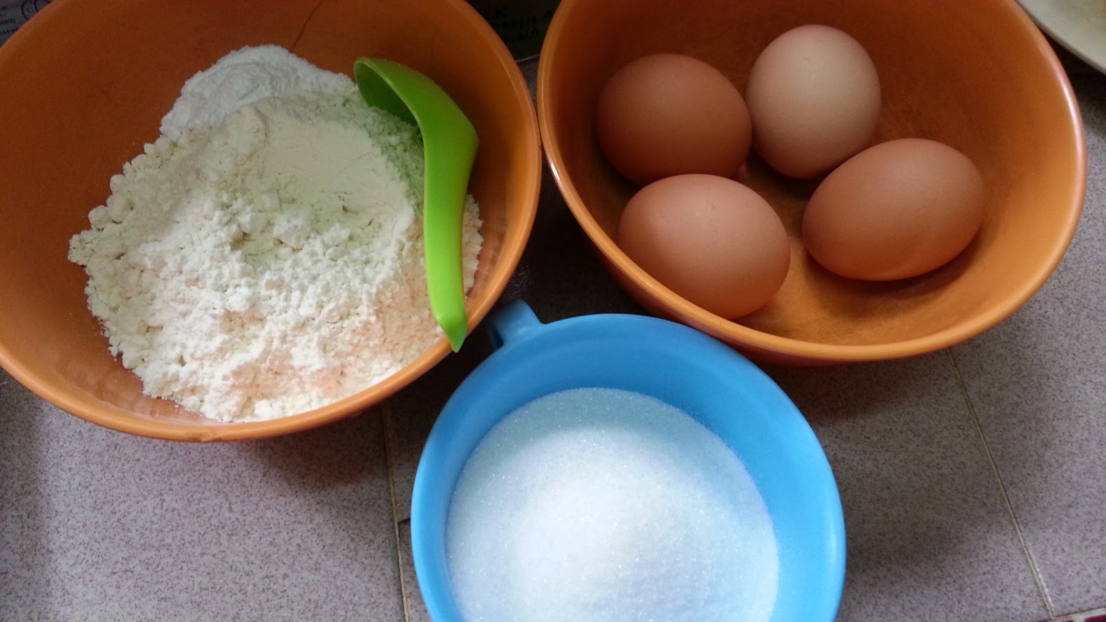 1)先把鸡蛋和幼糖打至松发。画个 8 字,不易消失。