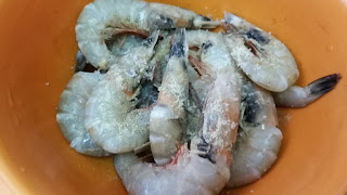 鲜虾加入少许盐和胡椒粉腌制约15分钟