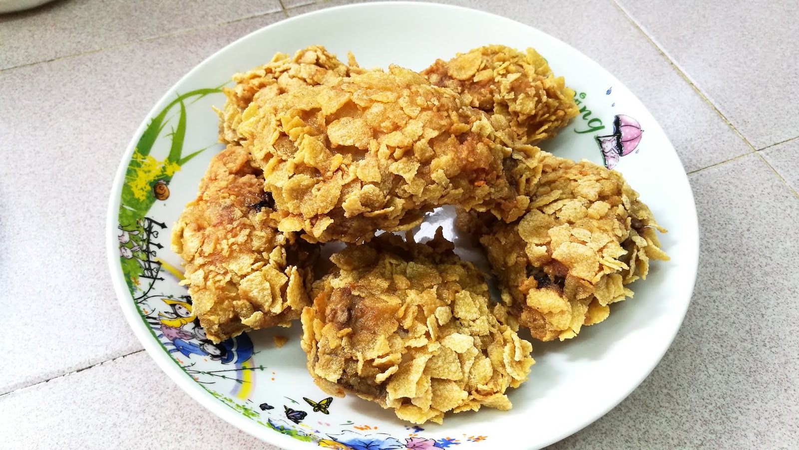 玉米片:适量(压碎 + 加少许的炸鸡粉混合均匀)