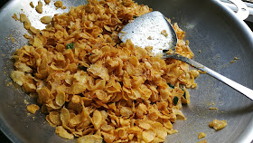 4)加入玉米片翻炒均匀。